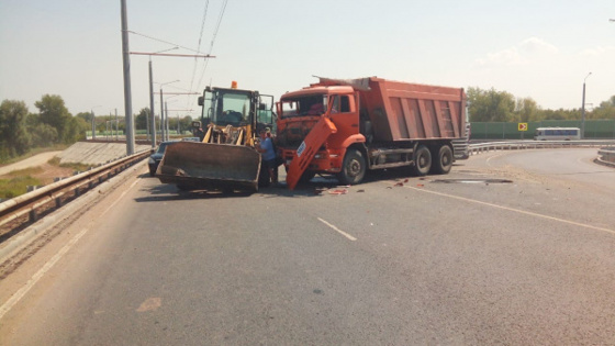 На Фрунзенском мосту в Самаре трактор врезался в "КамАЗ"