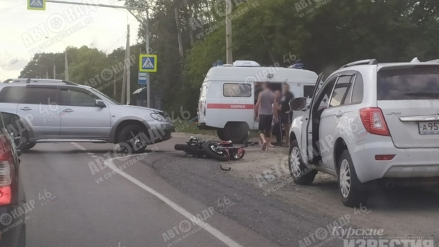 Под Курском столкнулись автомобиль и мотоцикл