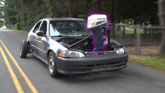 С мотором от лодки по суше: сумасшедший тюнинг Honda Civic