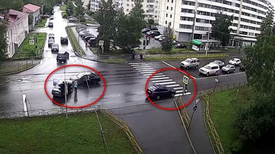 Вчера вечером в Петрозаводске камера видеонаблюдения зафиксировала редкое совпадение – два дорожных эпизода, произошедших в одном месте с интервалом в считанные секунды. Речь идет об оживленном перекрестке Правды-Варламова. Пятого августа в 17:00 влобовую столкнулись две машины. Одна пыталась повернуть на Варламова, а другая двигалась прямо по улице Правды. Момент столкновения четко виден на записи в отличие от сигнала ближайшего светофора. В соцсетях мнения водителей разделились. Кто-то и вовсе считает, что здесь вообще стоило бы запретить левый поворот, так как ширина дороги недостаточна для такого маневра. На узком перекрестке затруднительно одновременно стоять и ждать тому, кто поворачивает, и проезжать тем, кто движется прямо. Вот и вчера машины не смогли разъехаться. Никто не пострадал, только машины обоих участников ДТП получили значительные повреждения. Второй инцидент произошел примерно через 15 секунд после столкновения легковушек. Автомобиль чуть ли не сбил пешехода на «зебре». Девушка какое-то время простояла на тротуаре, ожидая, когда проедет ближайшая машина. Она сделала шаг на проезжую часть и чуть не попала под колеса автомобиля. Почему-то водитель не затормозил вовремя. На записи видно, как девушка в страхе отпрыгивает назад, а водитель в последний момент жмет на тормоз, когда его автомобиль уже заехал на переход.