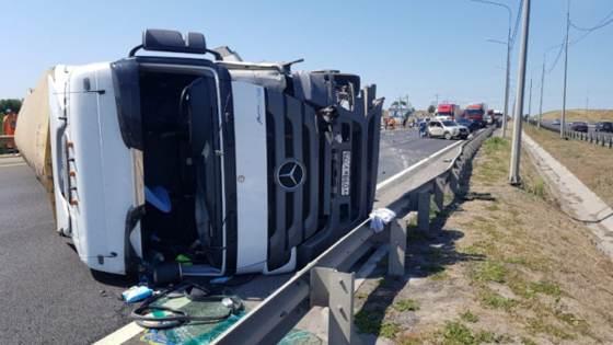 Грузовик «Мерседес» опрокинулся на трассе после удара о «Хендэ»: двое в больнице
