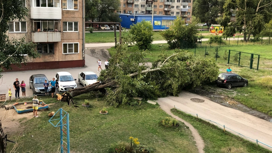 Ветер повалил дерево на припаркованные автомобили в Ленинске-Кузнецком