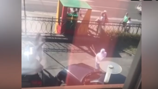В Калининграде в очереди в Макдоналдса человек в маске битой повредил автомобиль. Покажем видео