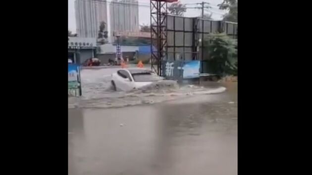 В затопленном Шанхае автомобили Tesla могут передвигаться без риска