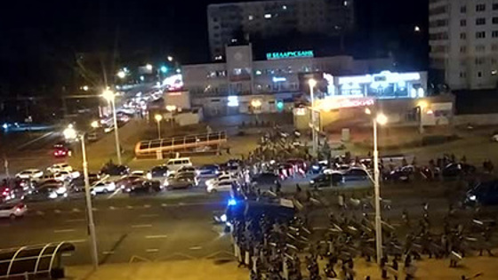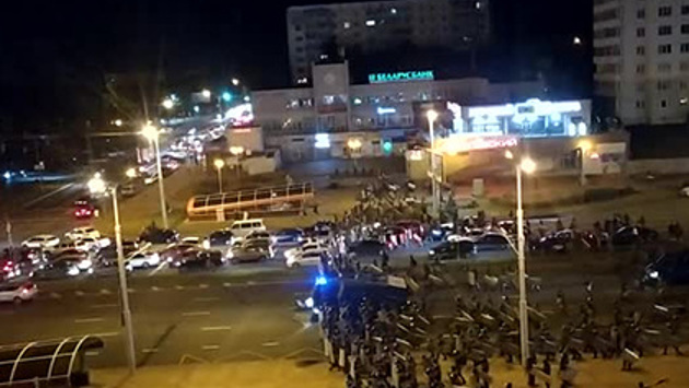 Идущую на протестующих колонну ОМОНа в Минске сняли на видео