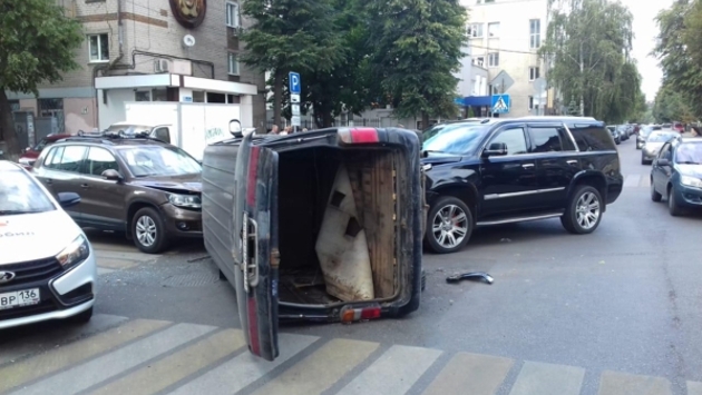В центре Воронежа перевернулась Toyota после удара о Cadillac: в больнице девушка и школьник