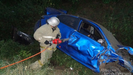 Ранним утром в Курской области иномарка опрокинулась в кювет
