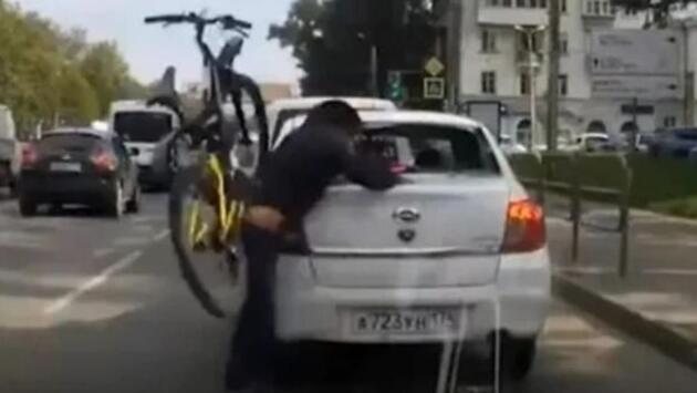 Велосипедист, собственным лицом лишивший заднего стекла автомобиль, скрылся с места инцидента