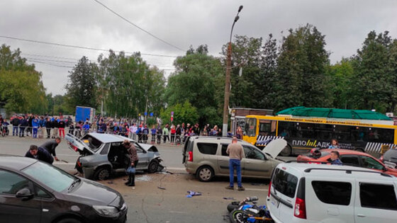ДТП сразу с 6 машинами и мотоциклом произошла 21 августа около 17:20 у д. 222 по ул. Удмуртской в Ижевске. Фото: МВД по УР Как сообщает пресс-служба МВД по Удмуртии, водитель автомобиля Субару столкнулся с мотоциклом Сузуки и сразу въехал в автомобиль ВАЗ 2115 . Мотоцикл повредил стоявший рядом автомобиль Лада Ларгус , а пятнашка столкнулась со стоявшим впереди автомобилем Лада Ларгус , который, в свою очередь, врезался в автомобиль Лада Гранта . По инерции Лада Гранта совершила столкновение с впереди стоящим Ниссаном . PreviousNext Водитель Субару попытался скрыться с места ДТП, но столкнулся с автомобилем Фольксваген - Очевидцы задержали виновника аварии и передали его прибывшим на место ДТП сотрудникам ДПС. У него - 37-летнего ижевчанина имелись признаки опьянения, но от прохождения медицинского освидетельствования он отказался, - подчеркивается в сообщении. Фото: МВД по УР В результате ДТП телесные повреждения в виде ушибов и переломов получили водитель мотоцикла и несовершеннолетний пассажир автомобиля ВАЗ . Возбуждено дело об административном правонарушении, проводится расследование. Задержанного поместили в изолятор временного содержания. ЧИТАЙТЕ ТАКЖЕ: Молодой мужчина погиб в столкновении легковушки и КамАЗа в Удмуртии В любой момент могут отказать сердце и печень : жительница Удмуртии похудела до 27 килограммов