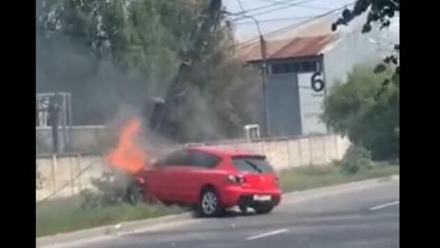 Иномарка врезалась в столб в Сормовском районе и загорелась