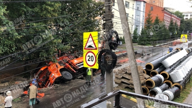 Сейчас на проезжей части по улице Мирной ведется ремонт теплосетей Рабочие раскопали часть дороги. По сообщениям очевидцев в паблике "Автокадр_46" днем 27 августа в траншею провалился КАМАЗ. Как именно случилось ЧП, неизвестно. Данных о пострадавших пока тоже нет. Анна Курочкина