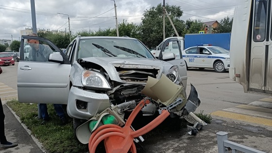 Иномарка снесла светофор в результате ДТП с тремя пострадавшими в Кузбассе