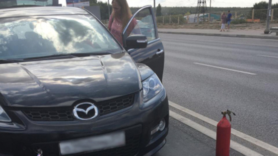 В Воронеже полицейские помогли потушить загоревшуюся на дороге Mazda CX-7