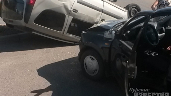 В Курске машина попала в аварию и опрокинулась на крышу