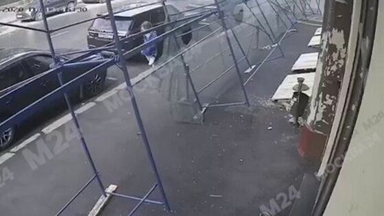 Строительные леса обрушились в 1-м Тверском-Ямском переулке. Кадры происшествия попали на видео, передает телеканал Москва 24.