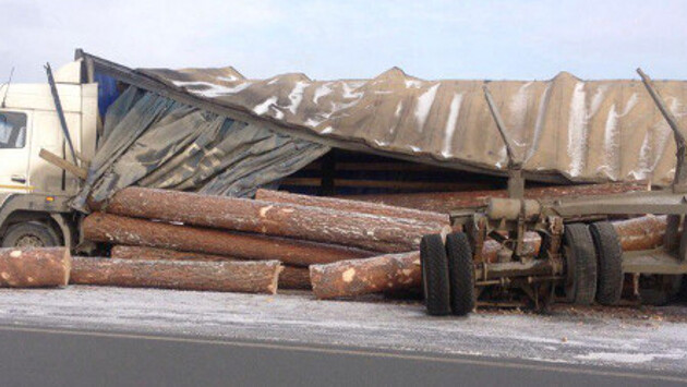 По сообщению Госавтоинспекции, участниками ДТП стали два транспортных средства: Ford Focus и тягач. Стало известно, что 20-летний водитель легковой машины находился в состоянии переутомления, поэтому заснул за рулем. Молодой человек, потеряв управление автомобилем, выехал на встречную полосу движения, где допустил столкновение с грузовиком, который вез бревна. Сильный удар отбросил машины на полсотни метров друг от друга, по дороге раскатились бревна, упавшие из кузова тягача. Пострадавших в аварии не было. Столкновение случилось в районе Ново-Свердловской ТЭЦ. Фото: из открытых источников