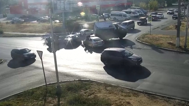 ДТП с двумя легковушками и фургоном в Волгограде попало на видео