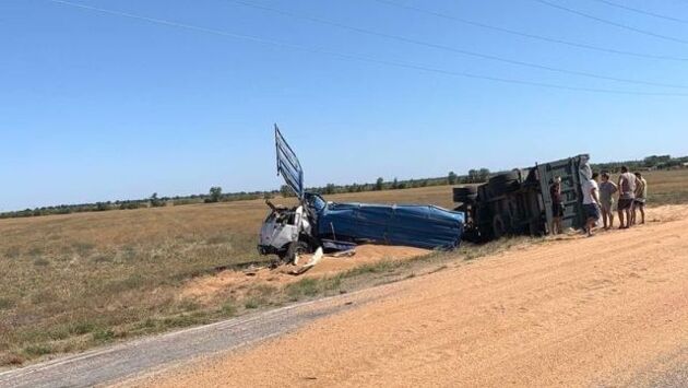 Под Евпаторией легковое авто стоолкнулось с груженым зерном "КамАЗом"