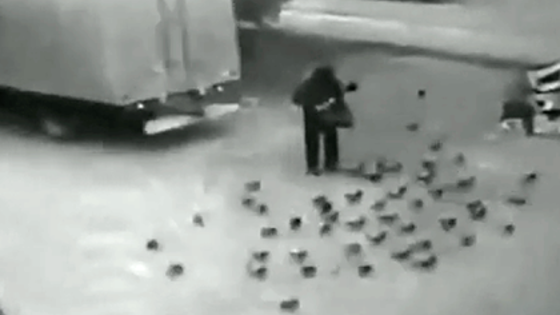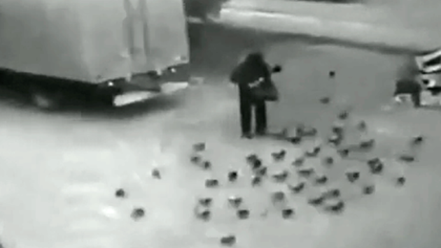 Камеры сняли смертельный наезд грузовика на кормившего голубей россиянина