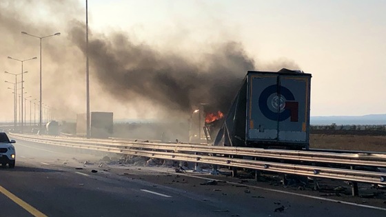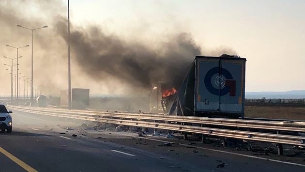 Появилось видео с загоревшейся фурой на трассе под Крымским мостом