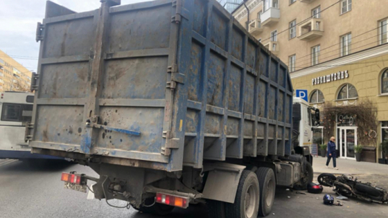 МВД опубликовало фото с места столкновения грузовика и байка в центре Воронежа