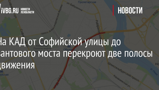 На КАД от Софийской улицы до вантового моста перекроют две полосы движения