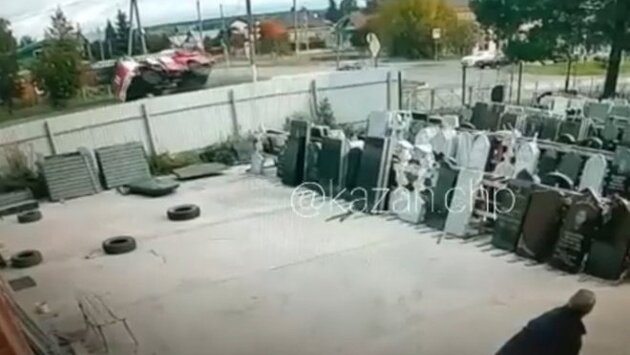 В Казани на видео попало, как легковушка едва не опрокинула пожарный автомобиль