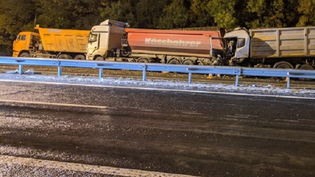 Накануне вечером под Оренбургом произошло крупное ДТП. На Нежинском шоссе не разъехались сразу три грузовых автомобиля. К ликвидации последствий привлекались сотрудники МЧС. Предварительно полицейские установили, что 57-летний водитель фуры Scania не справился с управлением. Большегруз занесло на припаркованный на краю проезжей части «КамАЗ». Из-за этого отечественный грузовик врезался в стоящий впереди автомобиль той же марки с кузовом. Сообщается, что в момент ДТП все фуры были груженые. В результате автомобильной аварии водителя Scania с травмами госпитализировали в одну из больниц Оренбурга. По факту ДТП полицейские собрали материал проверки.
