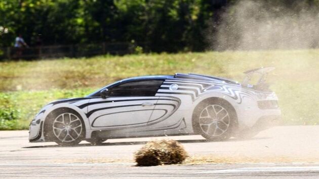 Во время шоу экзотических автомобилей в Швейцарии существующий в единственном экземпляре гиперкар Bugatti Veyron Grand Sport Vitesse L\'Or Blanc протаранил заградительные тюки из сена, не сумев вовремя остановиться. Несколько видеороликов, опубликованных в Интернете, показывают, как Bugatti гоняется с другим автомобилем во время драг-ресинга на мероприятии, организованном клубом Supercar Owners Circle в аэропорту Гштаада в Швейцарии. Когда Bugatti с ревом проносится мимо финиша, слышно, как водитель нажимает на тормоза. Воздушный тормоз французского гиперкара срабатывает, блокированные шины визжат, а водитель тщетно пытается остановить суперкар. В какой-то момент сзади вырывается клуб дыма, а буквально через несколько мгновений Veyron врезается в заградительный тюк сена в конце взлетно-посадочной полосы. На основании этих видеороликов, конечно, невозможно сделать каких-либо выводов о повреждениях суперкара, но, по словам очевидцев, Bugatti избежал серьезных повреждений, но одно из ребер, проходящих через центр правого воздухозаборника, треснуло пополам. Видимо дорогая деталь не подлежит ремонту, и автомобилю потребуется новый бампер. Учитывая эксклюзивную схему окраски и редкость модели, ремонт влетит владельцу в копеечку. Однако, если у тебя есть такой супердорогой и уникальный Veyron, купленный явно не на последние деньги, то вы наверняка сможете себе это позволить. Но могло быть и намного хуже, если гонки проводились не на специально отведенной для таких мероприятий трассе, а в городе или на загородной трассе, где много жестких бетонных и металлических препятствий, а главное - других участников дорожного движения. Можно сравнить эту аварию с недавним более серьезным дорожным происшествием: столкновением Bugatti Chiron с Porsche 911 на загородной трассе в той же Швейцарии. Тогда примерный материальный ущерб составил 4.06 миллиона долларов.