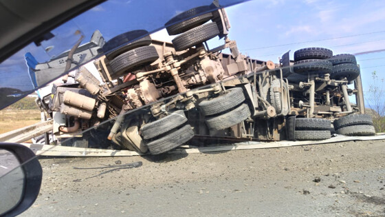 На объездной трассе Седанка – Патрокл в четвёртом часу 24 сентября произошло ДТП. Очевидцы сообщили в ИА DEITA.RU, что на повороте к ТЭЦ-2 в районе Патрокла грузовик, двигавшийся в правом ряду, вылетел на обочину, перевернулся на бок и лежит, смятый практически «в гармошку». Других пострадавших участников аварии нет. Движение по трассе свободное, так как большегруз при опрокидывании не перекрыл ни одной полосы, он только подмял под себя ограждение. На месте уже находится полиция. Во Владивостоке к 16 часам движение свободное, дорожная ситуация оцениваются в 3 балла по сервисам «Яндекс.карты» и 2ГИС. Перекрыто движение на улице Ковальчука в связи с ремонтными работами.