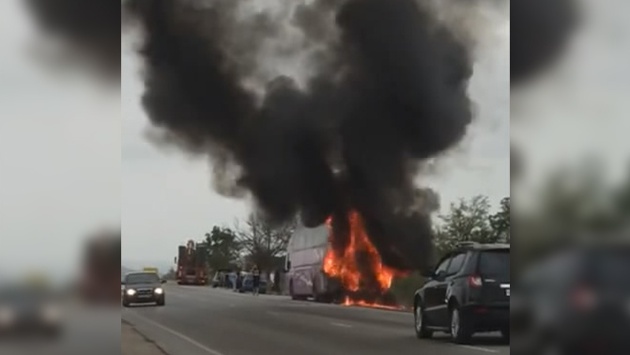 По предварительной информации, пострадавших нет. Все пассажиры и водитель самостоятельно покинули автобус. На выезде из Керчи загорелся пассажирский автобус. На кадрах, опубликованных очевидцами, видно, что транспортное средство, охваченное огнем, стоит на обочине. По данным «Керчь ИНФО», из-за ЧП дорога на подъезде к трассе «Таврида» перекрыта в обе стороны. На месте работают пожарные. «По прибытии на место сотрудниками МЧС России установлено, что горит моторный отсек и часть пассажирского салона автобуса, следующего по маршруту Геленджик - Симферополь», - сказано в сообщении регионального МЧС. По предварительной информации, пострадавших нет. Все пассажиры и водитель самостоятельно покинули автобус.