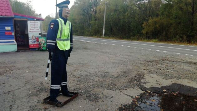 На главной трассе Солнечного района по дороге к популярным базам отдыха «Амут» и «Холдоми» появился двухметровый манекен инспектора ГИБДД «при исполнении». Местные водители уже окрестили его «дядей Стёпой» и, завидев фигуру в форме издалека, сбрасывают скорость, сообщает ИА «Хабаровский край сегодня». Впервые деревянный манекен сотрудника ДПС появился на дороге в Солнечном районе ещё в 2019 году, на бывшем посту ГИБДД. За время своего «наряда» блюститель закона стал не только местной достопримечательностью, но и раздражающим фактором для некоторых любителей погонять. В связи с чем, периодически страдал от вандалов. - Теперь же мы, ветераны МВД Хабаровского края, создали полностью из металла противовандальный манекен, который из-за своей высоты в 2 метра уже окрестили дядей Стёпой. Надо сказать, что манекен пользуется популярностью. Люди даже специально приезжают с ним сфотографироваться, - отметил ветеран МВД, автор похожего макета поста ДПС в Комсомольске-на-Амуре Александр Цыганов. Однако здесь районное ГИБДД к установке железного «полицейского» отношения не имеет, все делалось силами троих ветеранов. - Конечно, для полной картины надо бы сделать рядом с дядей Стёпой ещё и патрульный автомобиль, но пока интереса со стороны местного отдела ГИБДД в этом вопросе нет, - отметил Цыганов. Но всё-таки свою функцию «дядя Стёпа» выполняет, автолюбители на аварийном участке скорость сбрасывают, тем более, что за манекеном стоит пункт видеофиксации правонарушений, а рядом с железным «полицейским» часто дежурит настоящий патрульный автомобиль. В планах у автора объекта Александра Цыганова поставить подобный пост ДПС у села Восточное Хабаровского района.