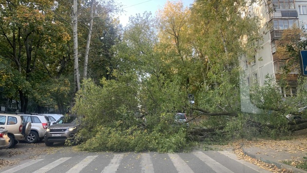 Упавшее дерево перегородило дорогу на улице Провиантской