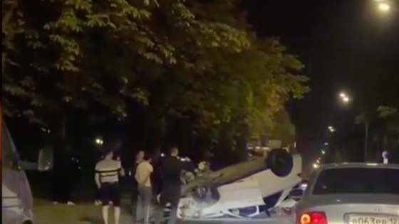В центре Краснодара перевернулся внедорожник Mercedes-Benz