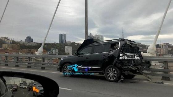 Утром, 29 сентября, во Владивостоке на Золотом мосту произошло очередное ДТП. В этот раз пострадавшим оказался черный внедорожник Toyota Land Cruiser Prado, сообщает PRIMPRESS. Фотография с места ДТП появилась в Instagram, в сообществе dpskontrol125rus. Судя по кадрам, авария стала полной неожиданностью для его участников и очевидцев. У внедорожника был открыт капот, только не совсем понятно, открылся он во время движения, либо автомобилист остановился и открыл его самостоятельно. В любом случае, жесткое ДТП не осталось незамеченным. Пока в обстоятельствах столкновения разбираются в ГИБДД подписчики сообщества горячо обсуждают всю ситуацию: Видимо на ходу капот открылся, тормознул резко и кто то в зад догнал? Полчаса назад тачка целая была😳; Как же надо капотину открывать, чтоб собачник в салон ушол? При открытии капота в салоне образовался вакуум?; Только что проезжал все нормально было.