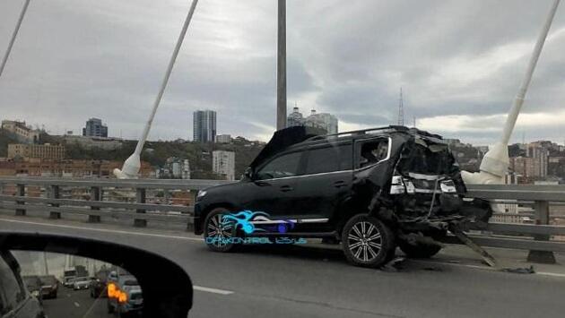 «Видимо капот на ходу открылся»: очередная авария произошла на Золотом мосту