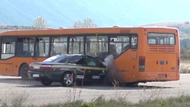 Энтузиасты решили проверить результат столкновения автомобиля с автобусом на скорости в 200 км/ч