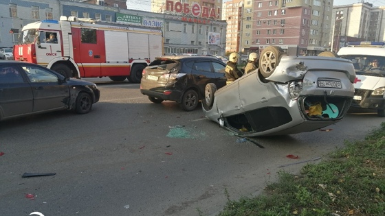 В ДТП одна машина перевернулась на крышу Сегодня, 2 октября, около 8 часов утра на улице 10 лет Октября столкнулись сразу 5 машин, одна из которых перевернулась на крышу. Автомобиль «Хонда-Фит» столкнулся с грузовой фурой «Ман», отчего первый перевернулся, а фура влетела в находившийся рядом «Дэу-Матиз». Последний зацепил два автомобиля: «хендай» и «шевроле», сообщили в пресс-службе Госавтоинспекции В результате аварии никто не пострадал. В дорожно-транспортном происшествии разбираются сотрудники ГИБДД. Фото: Аварийный Омск