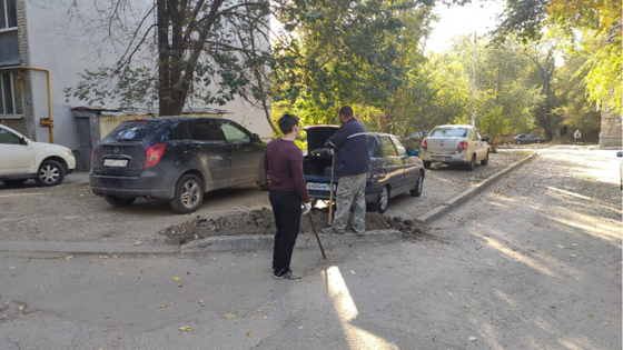 Саратовец выкопал бордюр во дворе для незаконной парковки своего автомобиля
