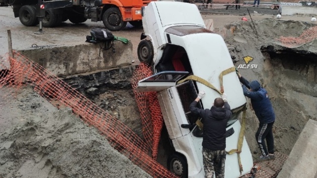 ВАЗ-2106 рухнул в разрытую теплотрассу в Ленинском районе