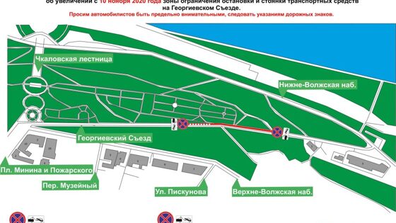 Ограничения на остановку и стоянку транспортных средств начнут действовать на Георгиевском съезде в Нижнем Новгороде с 10 ноября. Об этом сообщается на сайте городского Центра организации дорожного движения.