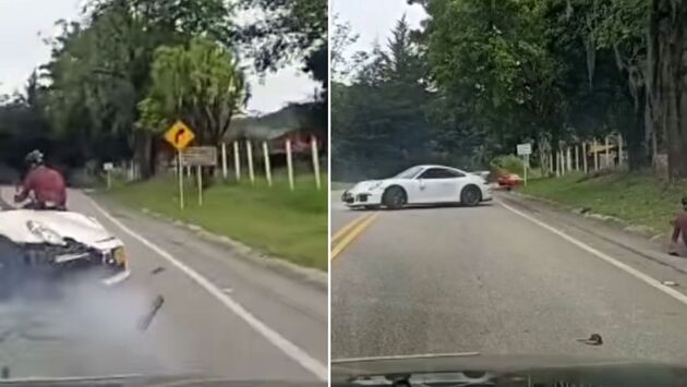 На видео запечатлен момент, когда Porsche 911 GT3 врезается в велосипедиста во время обгона через сплошную где-то в Колумбии.