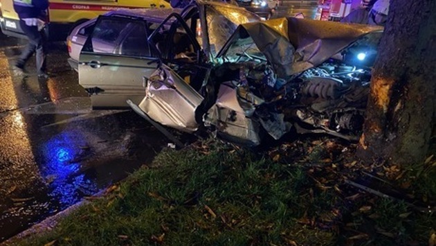 Возле ТЦ "Плаза" легковушка врезалась в дерево, есть пострадавший