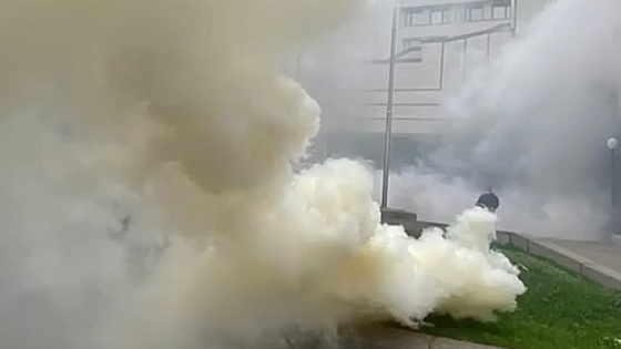 На кадрах видно, как кто-то из участников митинга кинул во внутренний двор суда петарду, после чего всю территорию затянуло черным и серым густым «смогом». Также были установлены несколько дымовых шашек, из которых фонтанирует оранжевый дым. Митинг был организован в связи с решением КСУ признать неконституционными полномочия Национального агентства по противодействию коррупции, в частности, отменить уголовную ответственность за недостоверное декларирование.