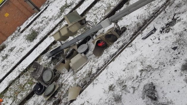 Он выложил также снимки последствий аварии. На фото видно, что упавший светофор перегородил трамвайные пути. Через эту остановку проходит маршрут трамвая №7. О пострадавших не сообщается.