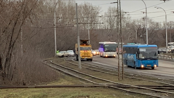 ДТП перегадило трамвайные пути в кемеровском микрорайоне