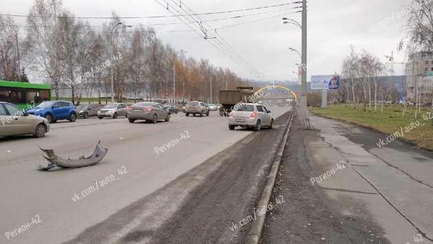 В кузбасской столице не поделили дорогу грузовой автомобиль и легковушка. У последней отвалился бампер.