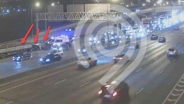 Он добавил, что из-за аварии перекрыты две полосы движения, ведется проверка.