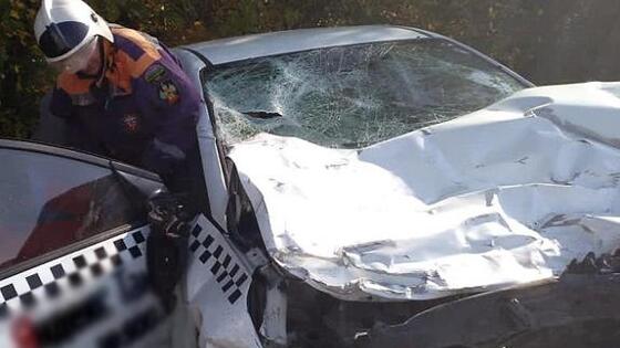 На Кубани такси попало в ДТП, пассажирку из машины освободили спасатели