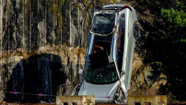 Volvo сбросил 10 новых автомобилей с 30-метрового крана для подготовки спасателей
